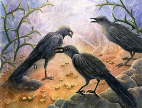 4 . თესვისას ზოგი მარცვალი გზის პირას დავარდა, მოფრინდნენ ფრინველები და აკენკეს.