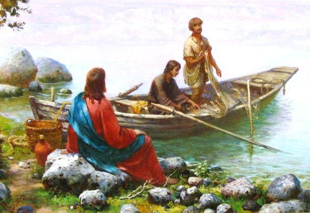 2 . დაინახა ტბასთან მდგომი ორი ნავი და მათგან გადმოსული მებადურები, ბადეებს რომ რეცხავდნენ.