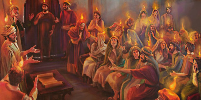 1 . ორმოცდამეათე დღის ზეიმმა რომ მოაწია, ყველანი ერთად იყვნენ.