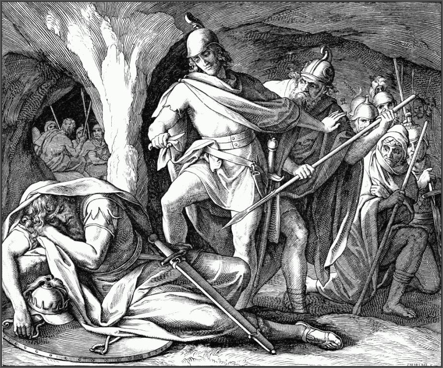 3 . ცხვრის სადგომებიდან გზის ნაპირას გამოქვაბულთან მივიდა და შევიდა საული შიგ მოსასაქმებლად, ხოლო დავითი და მისი ხალხი გამოქვაბულის სიღრმეში ისხდნენ.