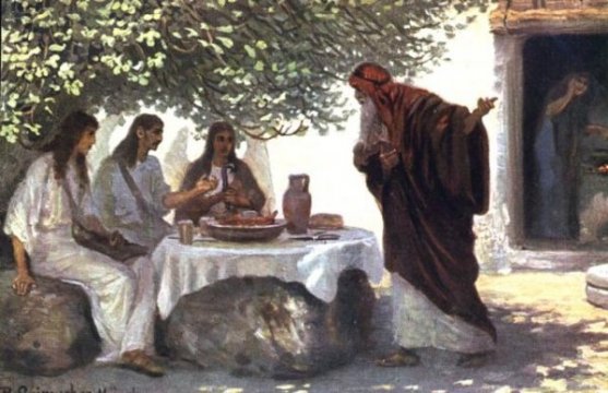 1 . საღამო ჟამს ორი ანგელოზი შევიდა სოდომში, ლოტი კი ქალაქის კარიბჭესთან იჯდა. ისინი რომ დაინახა, ადგა, წინ მიეგება და მიწამდე სცა თაყვანი.