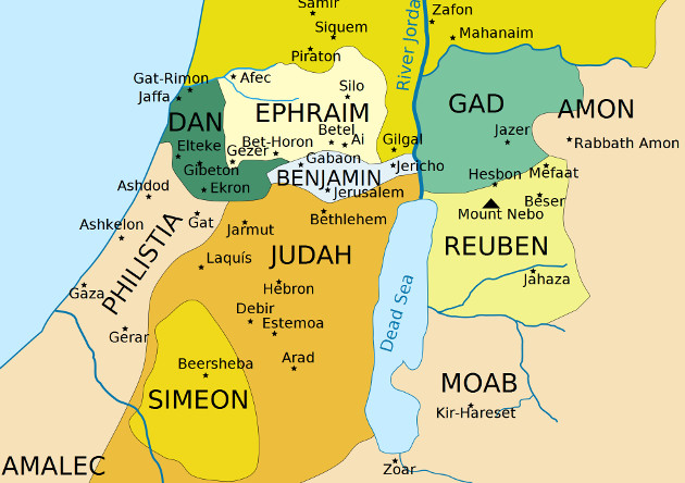 19 . შემდეგ საზღვარი ბეთ-ხოგლასთან ჩრდილოეთისკენ გაივლის და მარილოვანი ზღვის ჩრდილოეთ ყურესთან ბოლოვდება, იორდანეს სამხრეთ ნაპირზე. ეს არის სამხრეთის საზღვარი.