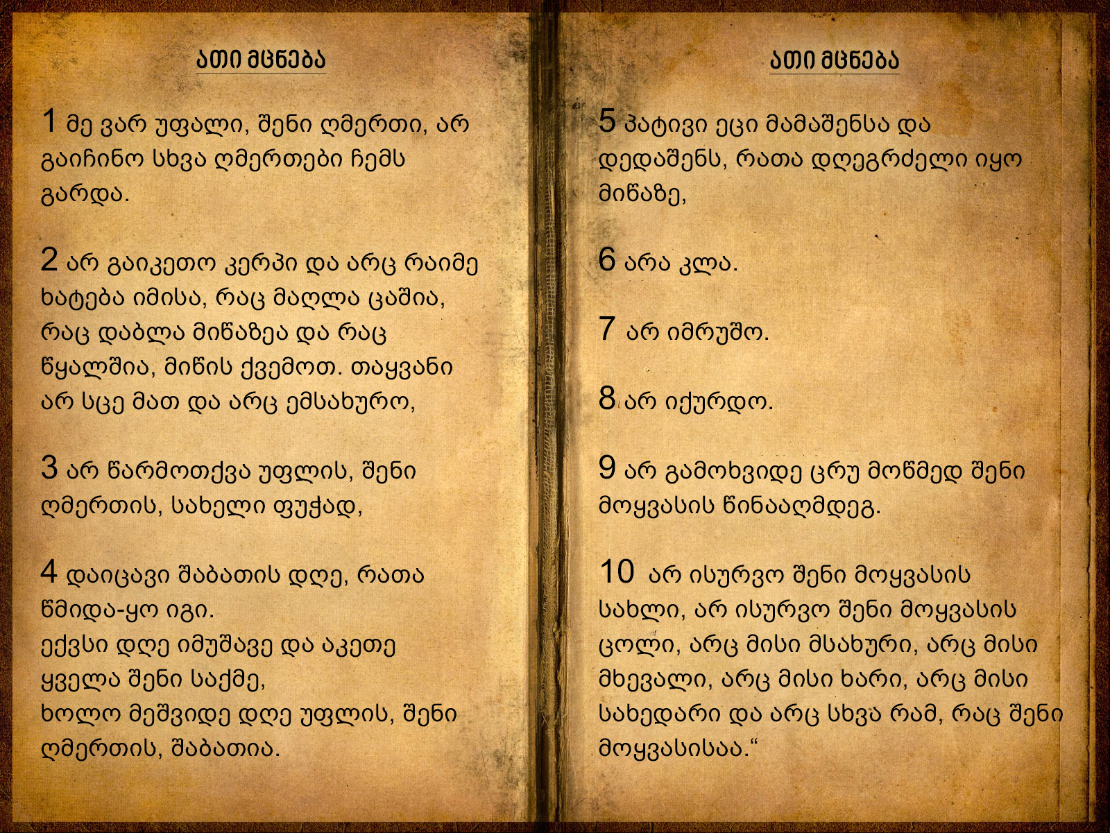 2 . "მე ვარ უფალი, შენი ღმერთი, რომელმაც გამოგიყვანე ეგვიპტის ქვეყნიდან, მონობის სახლიდან.