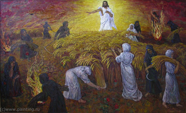 13 . მიუშვით ნამგლები, რადგან მოიწია სამკალმა; მოდით და დაწურეთ, რადგან სავსეა საწნახელი; გაივსო კოდები, რადგან დიდია მათი ბოროტება.