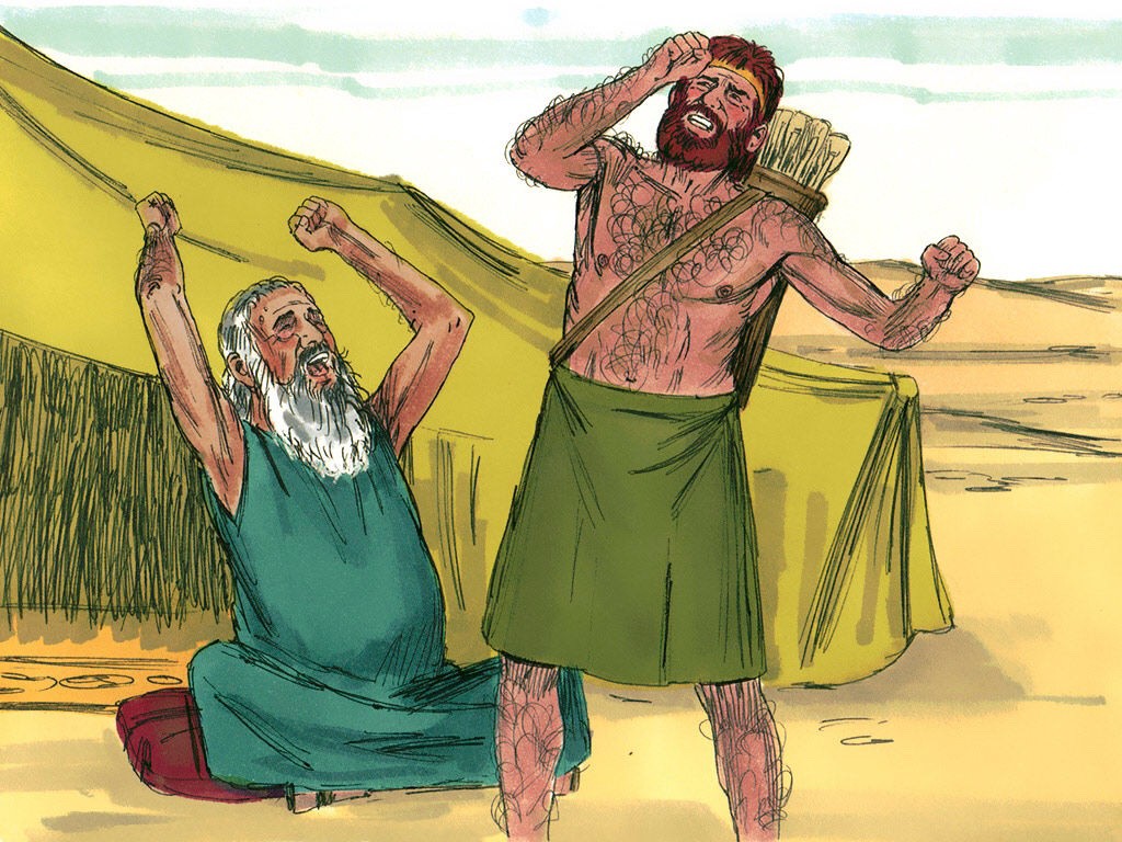 1 . როცა მოხუცდა ისაკი და დაუსუსტდა თვალისჩინი ისე, რომ ვეღარ ხედავდა, მოუხმო მან ესავს, თავის უფროს ძეს, და უთხრა მას: "შვილო ჩემო!” და უპასუხა: "აქა ვარ”.
