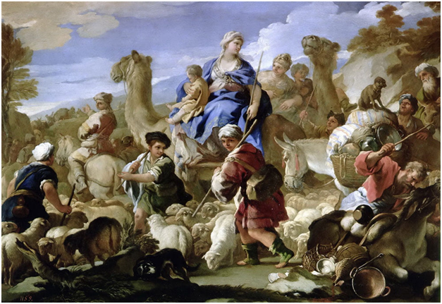 19 . ცხვრის გასაპარსად იყო ლაბანი წასული და მოჰპარა რახელმა მამამისს საოჯახო კერპები.