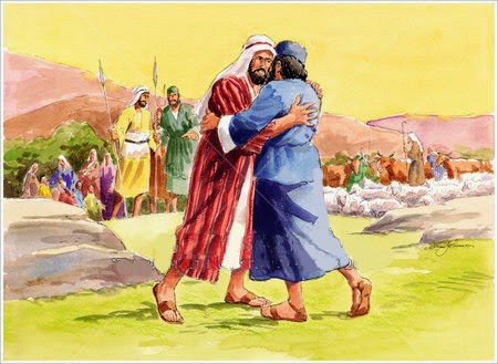 4 . და გამოიქცა ესავი მის შესახვედრად, გადაეხვია, ყელზე მოეჭდო, გადაკოცნა და ატირდა ორივე.