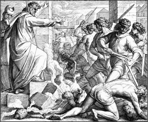 1 . დაინახა ხალხმა, რომ აყოვნებდა მოსე მთიდან ჩამოსვლას, შეიკრიბნენ აჰარონთან და უთხრეს: "ადექი, გაგვიკეთე ღმერთი, რომელიც ჩვენი წინამძღოლი იქნება, რადგან არ ვიცით, რა შეემთხვა იმ კაცს, მოსეს, რომელმაც გამოგვიყვანა ეგვიპტის ქვეყნიდან”.