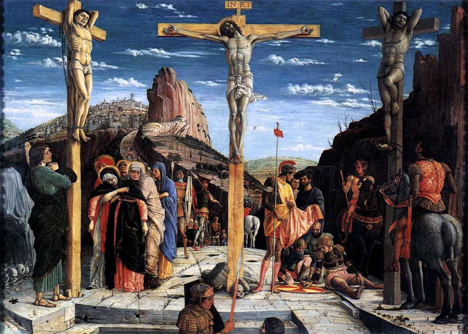 51 . და აჰა, მაღლიდან დაბლამდე, ორად გაიხა ტაძრის კრეტსაბმელი, შეიძრა დედამიწა და დასკდა კლდეები.