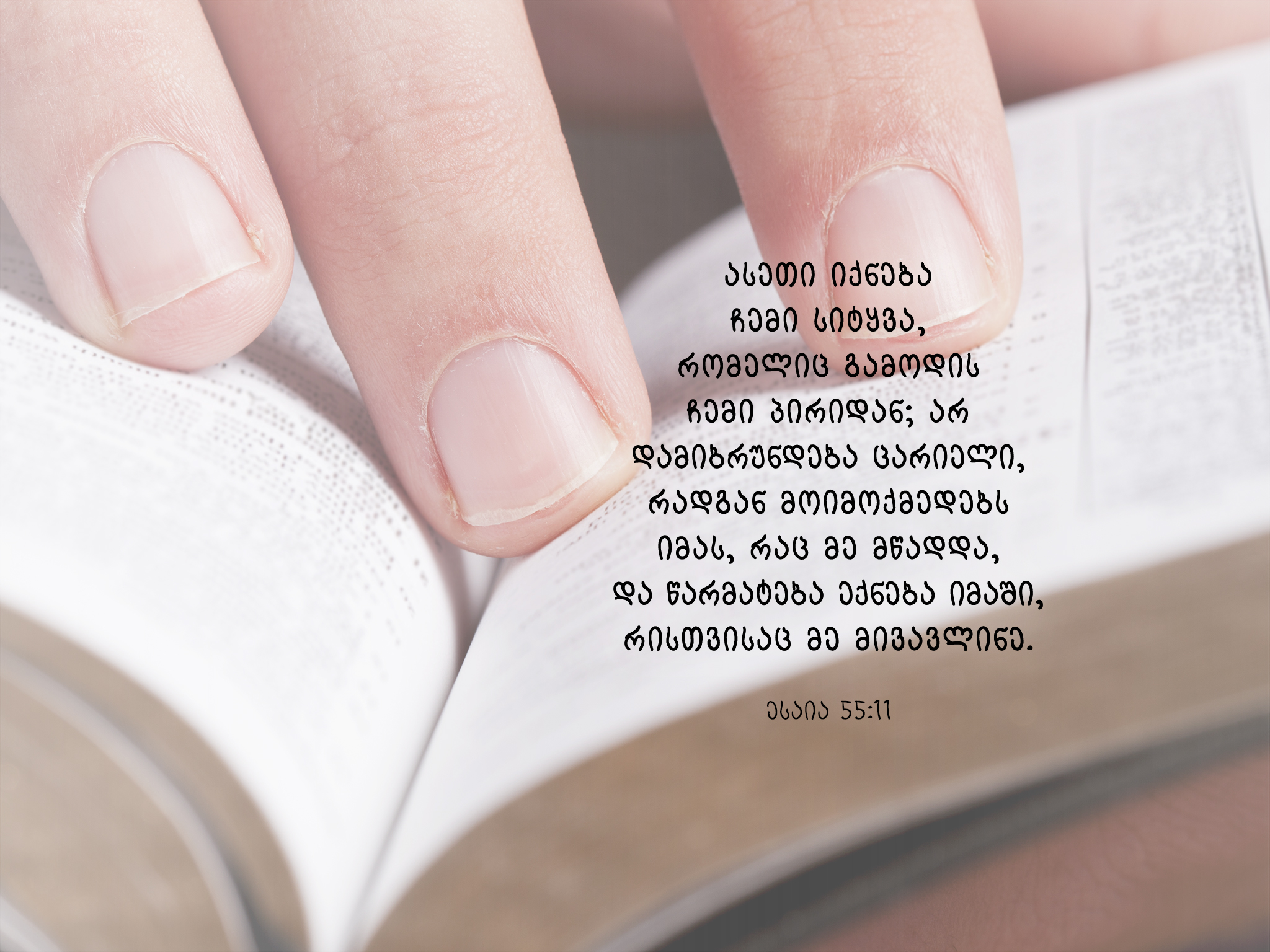 11 . ასე იქნება ჩემი სიტყვა, რომელიც გამოდის ჩემი ბაგიდან - ფუჭად არ დამიბრუნდება იგი, რადგან იმას მოიმოქმედებს, რაც მსურს და მიაღწევს იმას, რისთვისაც გავგზავნე.