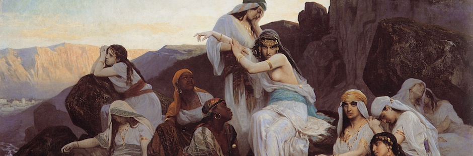 38 . უთხრა იფთახმა: "წადი” და გაუშვა იგი ორი თვით. ისიც წავიდა თავის მეგობარ ყმაწვილქალებთან ერთად და იგლოვა მთებში თავისი ქალწულობა.