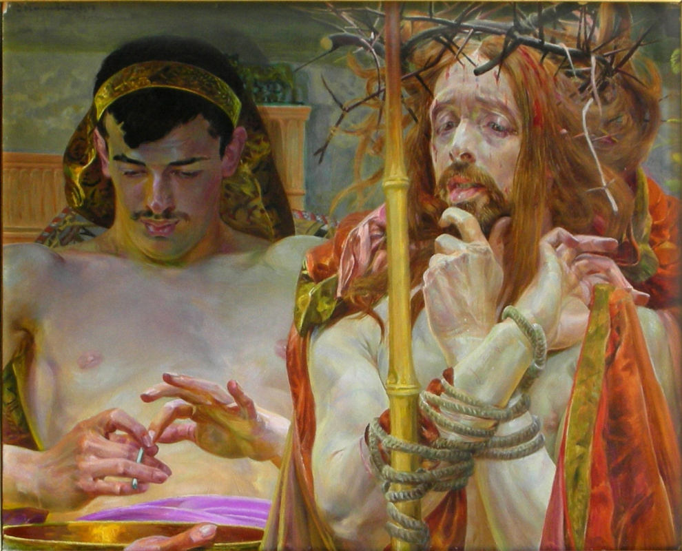 38 . მის ზემოთ ბერძნული, რომაული და ებრაული ასოებით დაწერილი წარწერა იყო: "ეს არის იუდეველთა მეფე".